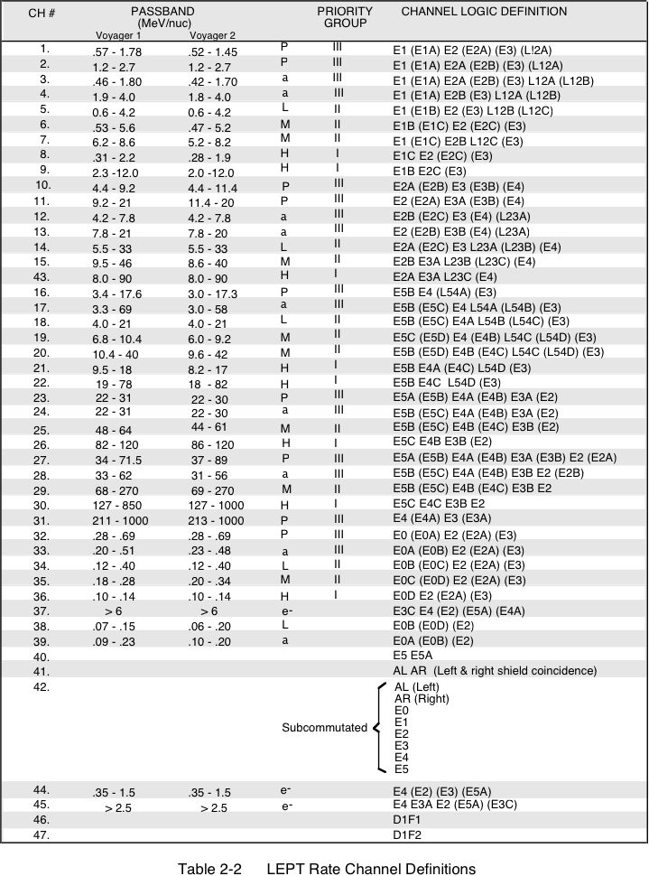 | Voyager 2 detector 0 failed, very few Rate 32 (o241), 33 (o240), 34 (o220), or 35 (o221) PHAs afterwards | N/A | 8/26/1981 (d238) |