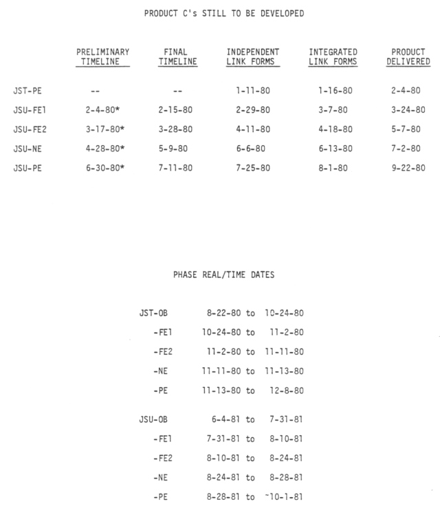 Schedule for remaining Product C's to be developed