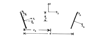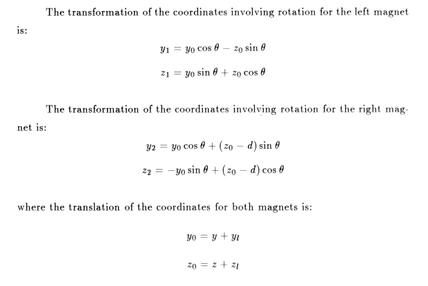 Now an observation point in the experimental coordinate system has to be expressed in the coordinate system centred at each of the magnets so that these expressions can be used. Therefore, the observation point must be rotated and translated appropriately.