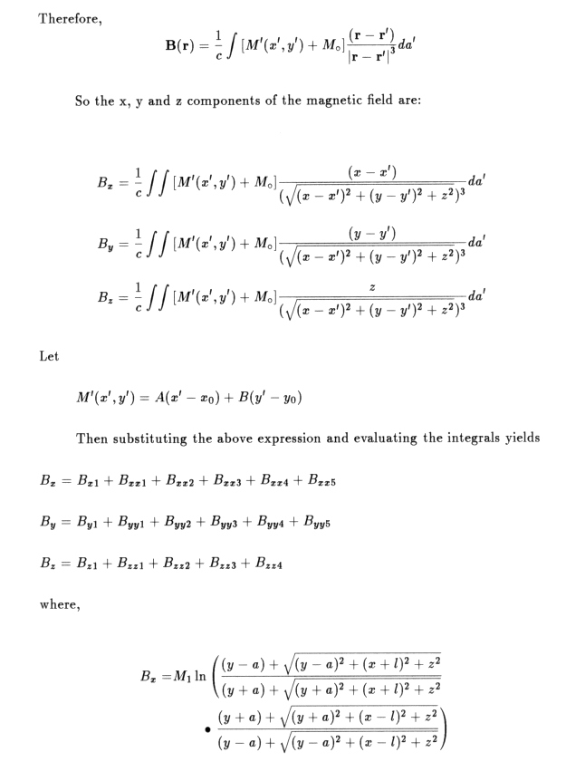 The magnetic field due to a slab of magnet with negligible thickness lying in the xy plane with its centre at the origin is given by [4]