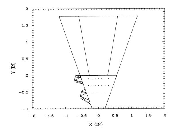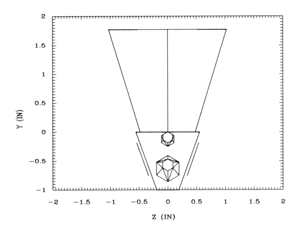 Figure 4.4. Projection of the modelled sensor assembly on the zy plane. The two lines on either side of the assembly show the two tilted magnets.